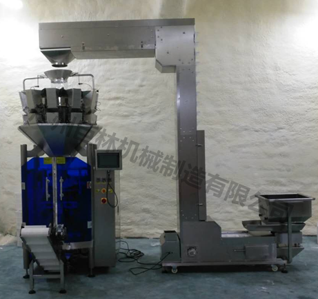 *本機(jī)與10頭電子組合秤配套在一起,可自動(dòng)完成計(jì)量、送料、充填制袋、日期打印的全部包裝過(guò)程;